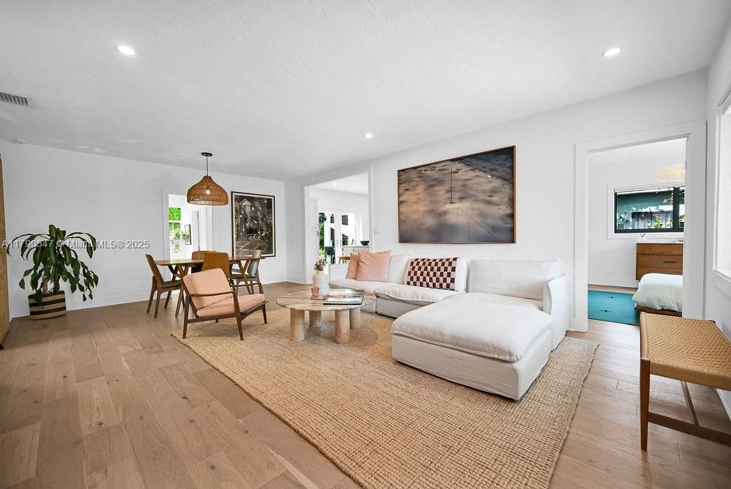 "Experience the ultimate in luxury living at 1010 NE 83rd St in Miami, FL. This stunning property boasts 3 bedrooms, 3 full bathrooms, and a den, all thoughtfully designed with minimalist yet comfortable aesthetics. No expense was spared in upgrades, from French Oak hardwood floors to custom closets and advanced technology features. Enjoy the lush landscaping and private backyard oasis, perfect for entertaining. With impeccable attention to detail, including a covered deck for all-weather enjoyment, this bohemian home truly has it all. Make it yours today. Mi casa, Su casa."