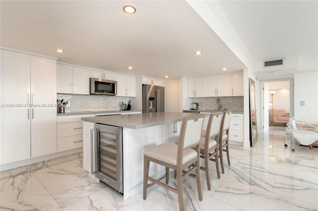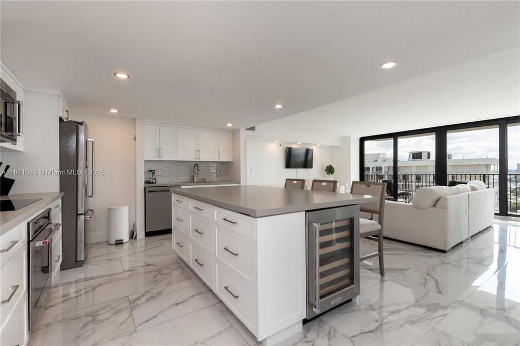 "Experience the ultimate in luxury living with this stunning 3-bedroom, 3-bath condo at 1450 Brickell Bay Dr APT 1707. This beautifully updated unit boasts an open-concept layout, flooded with natural light and featuring sleek porcelain tile floors. The modern kitchen with center island, built-in wine fridge, and ample space for entertaining is a chef's dream. The enclosed den, complete with washer/dryer and closet, offers versatility as a home office or guest room. Unwind in the expansive living and dining areas while taking in the breathtaking views of Biscayne Bay. Enjoy top-of-the-line amenities in the well-maintained Costa Bella building, currently undergoing upgrades. Don't miss the opportunity to own a piece of paradise in the heart of Miami. (Unit currently leased.)"