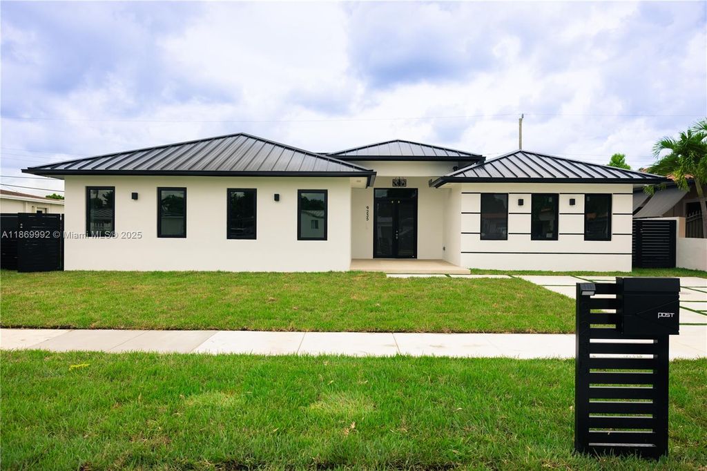 "Experience the ultimate in modern luxury with this stunning 4-bedroom, 3-bathroom pool home located at 9235 SW 42nd St in the desirable city of Miami. Boasting 2,400 sq ft of living space, this new construction home features an open-concept floor plan, high ceilings, and an abundance of natural light. The kitchen is a chef's dream with quartz countertops, custom cabinetry, and stainless steel appliances. The primary bedroom offers a spa-like bathroom and 2 walk-in closets. Step outside to your own private oasis, complete with a newly built heated pool, hot tub, and spacious patio perfect for entertaining. Built with quality and durability in mind, this home includes a metal roof and impact windows/doors for added peace of mind. Located in a sought-after neighborhood close to schools, parks, shopping, and dining, this is the perfect place to call home. Don't miss this opportunity to live in luxury and comfort - schedule a showing today!"